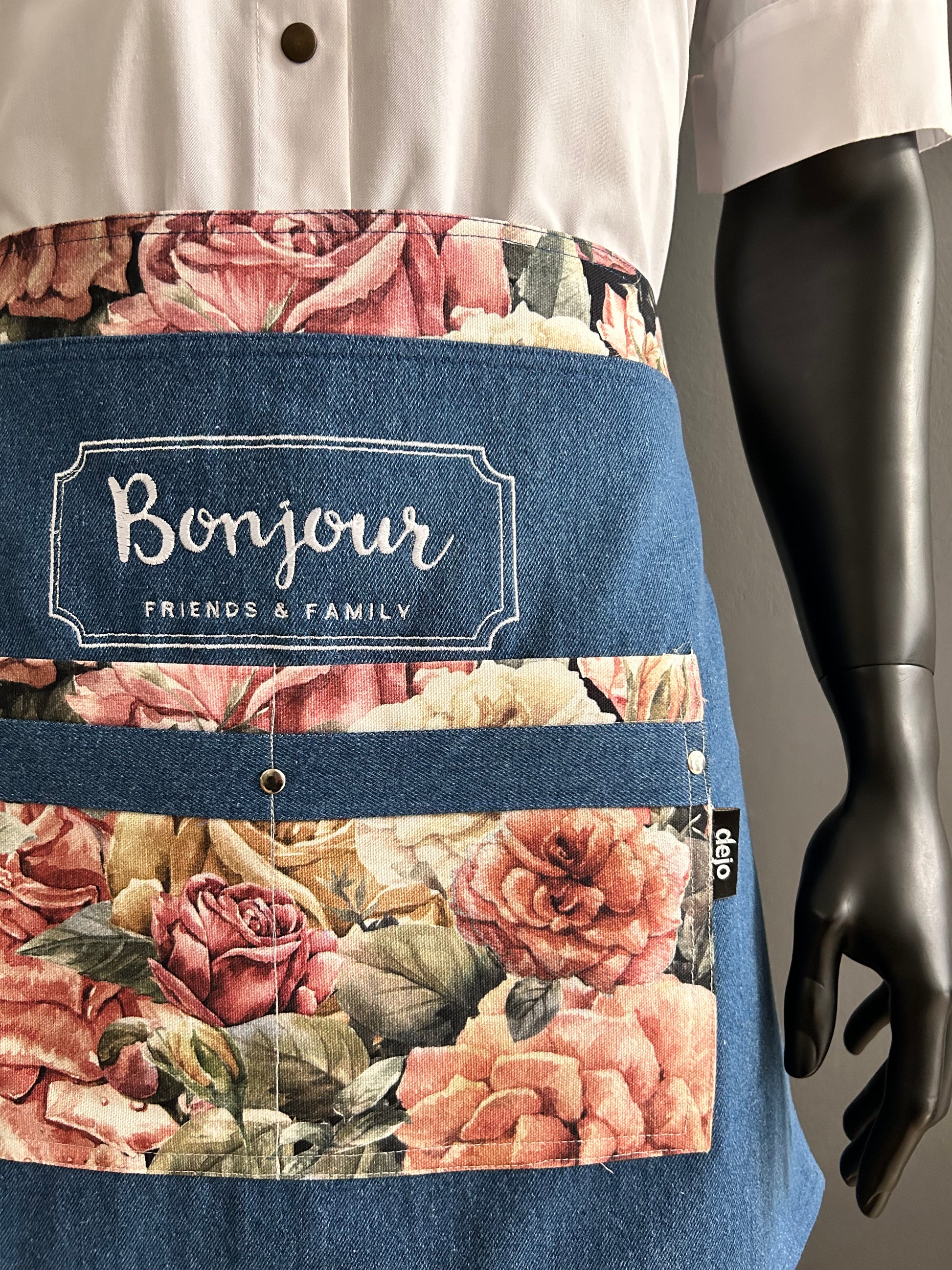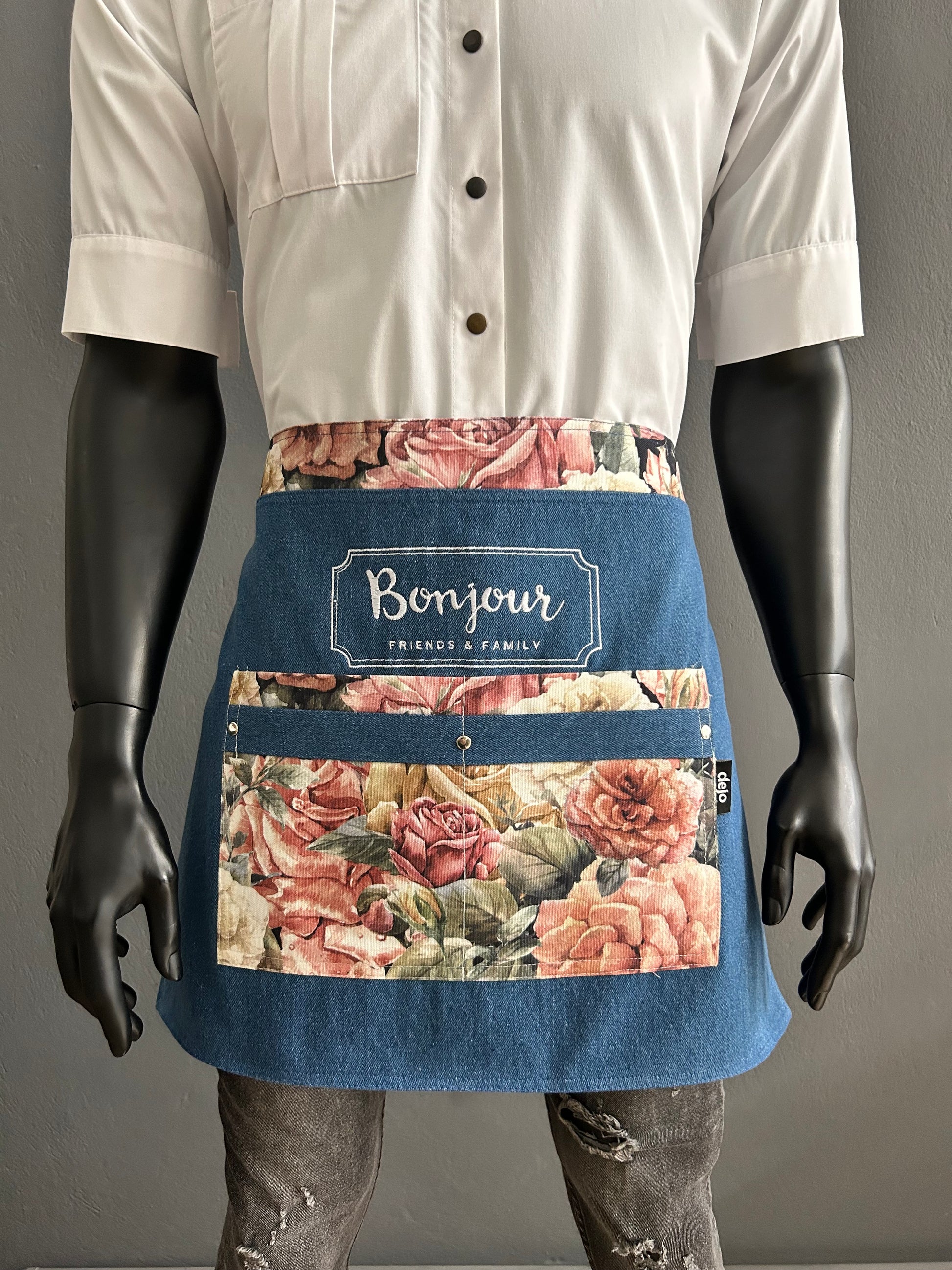 The Bonjour Floral Denim Service Apron combines strength, elegance, and timeless charm.